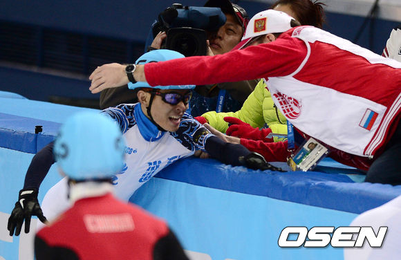 안현수가 코칭스태프와 기뻐하고 있다./ soul1014@osen.co.kr