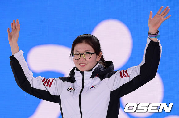 여자 쇼트트랙의 간판 심석희가 16일(이하 한국시간) 러시아 소치 해안 클러스터 내 올림픽 파크 메달 프라자에서 열린 시상식에서 은메달을 수상하고 있다.