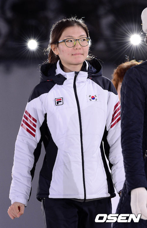 여자 쇼트트랙의 간판 심석희가 16일(이하 한국시간) 러시아 소치 해안 클러스터 내 올림픽 파크 메달 프라자에서 열린 시상식에서 입장하고 있다.