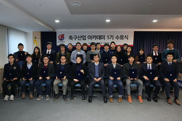 한국프로축구연맹(총재 권오갑, 이하 '연맹')이 프로 스포츠 단체로는 최초로 설립한 '축구산업아카데미(Football Industry Academy)' 1기생 교육이 총 25주 교육 과정을 모두 마치고 지난 15일 오후 서울 신문로 축구회관 2층 다목적회의실에서 수료식을 가졌다.