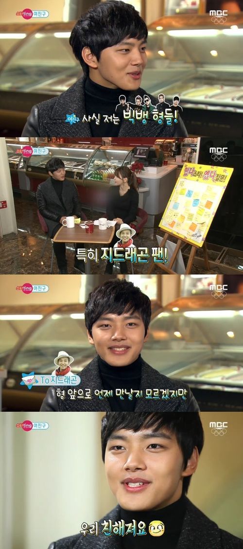 그는 이날 "가장 좋아하는 걸그룹이 누구냐"를 리포터의 질문을 받고 "소녀시대도 좋아하고 투에니원도 좋아한다. 미쓰에이도 좋아하고.."라며 "근데 사실 저는 빅뱅 형들을 좋아한다"고 깜짝 고백해 놀라움을 안겼다.