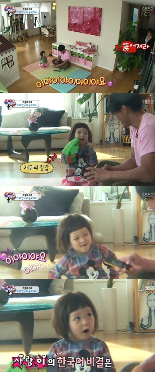 16일 방송된 KBS 2TV 예능프로그램 '해피선데이-슈퍼맨이 돌아왔다'(이하 '슈퍼맨')에서는 추성훈과 한국어 공부를 하는 사랑이의 모습이 그려졌다.