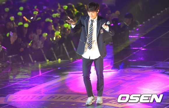 그룹 B1A4 진영이 16일 오후 서울 방이동 올림픽공원 SK올림픽핸드볼경기장에서 열린 세 번째 단독콘서트 '더 클래스(THE CLASS)' 무대에 올라 멋진 공연을 선보이고 있다.