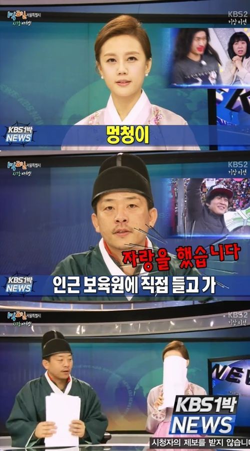 '1박2일' 김준호가 윤수영 아나운서와 뉴스 진행을 해 눈길을 끌었다.