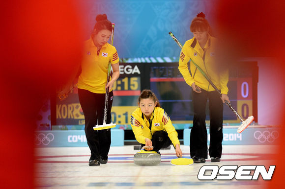 신미성(36)과 김지선(28) 이슬비(26) 김은지(25) 엄민지(23, 이상 경기도청)으로 구성된 여자 컬링대표팀(세계랭킹 10위)이 16일(이하 한국시간) 러시아 소치의 아이스큐브 컬링센터에서 덴마크와 경기를 가졌다.
