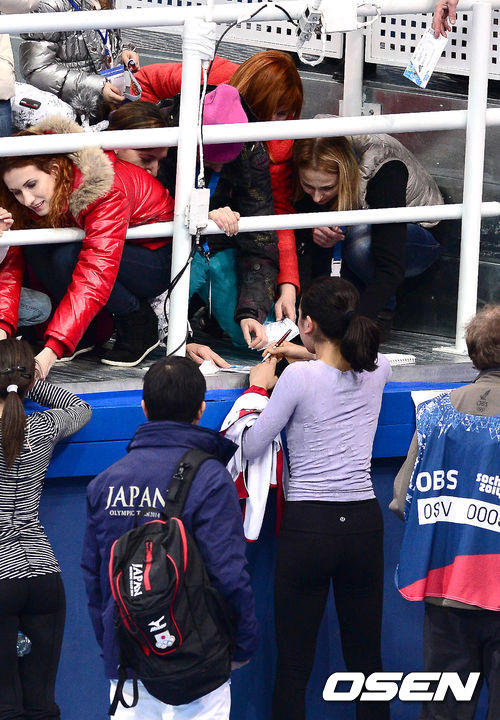 아사다 마오가 훈련을 마치고 팬들에 사인을 해주고 있다.