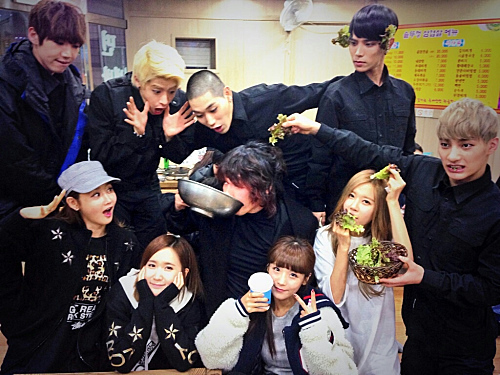 가수 김장훈이 16일 119콘서트를 함께 한 크래용팝과의 회식 인증샷을 공개했다.
