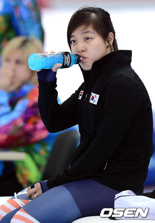 김보름이 경기를 마치고 음료를 마시며 기록을 살피고 있다 ./ soul1014@osen.co.kr