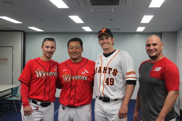 이후 세든은 별도의 공간에서 외국인 선수들과 오랜 시간 이야기를 하며 안부를 주고받았다. 이 자리에는 지난해 같이 뛰었던 조조 레이예스는 물론 올해 SK의 새 외국인 선수로 입단한 로스 울프도 함께 했다. 이날 등판 계획이 없었던 세든은 경기 시작 전까지 이들과 함께 하며 유쾌한 시간을 보냈다.