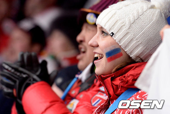 러시아 여성 관중이 페이스 페인팅을 하고 열띤 응원을 하고 있다./ soul1014@osen.co.kr