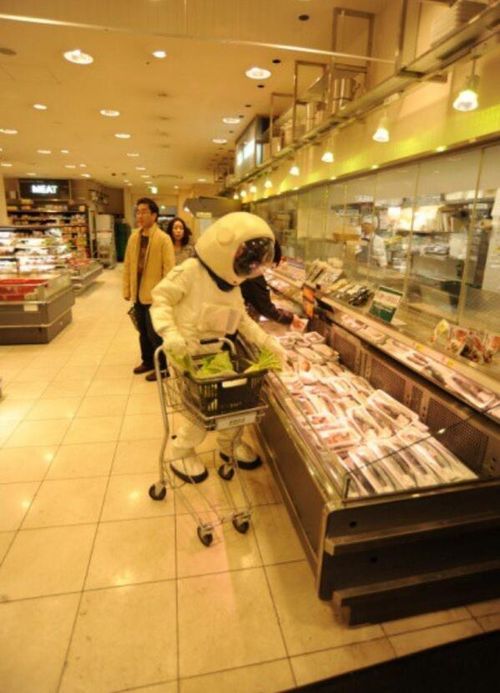 사진 속 사유리는 우주복으로 보이는 하얀색의 의상을 입고 마트 안에서 장을 보고 있다. 해당 사진은 지난 2010년 4월 촬영된 사진으로 사유리의 미니홈피에 '지구 착륙'이라는 제목으로 게재된 바 있다.