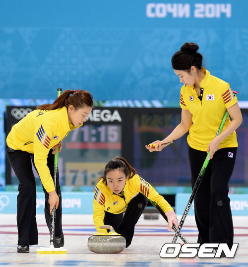 '맏언니' 신미성(36)을 비롯해 김지선(28), 이슬비(26), 김은지(25), 엄민지(23, 이상 경기도청)로 구성된 여자 컬링대표팀(세계랭킹 10위)은 18일(이하 한국시간) 러시아 소치의 아이스큐브 컬링센터에서 열린 컬링 여자 라운드 로빈 세션 12 캐나다(세계랭킹 2위)와 경기서 3엔드까지 4-1로 리드하고 있다.