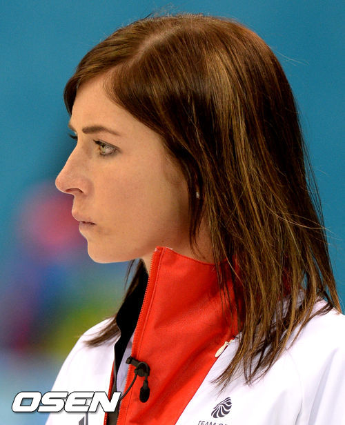 18일(이하 한국시간) 러시아 소치 아이스큐브 컬링센터에서 열린 2014 소치 동계올림픽 컬링 여자 풀리그 8차전 영국 여자 컬링 대표팀의 이브 무어헤드가 경기에 임하고 있다.