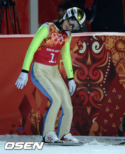 강칠구가 스키점프를 마친 후 고개를 갸우뚱하고 있다. /soul1014@osen.co.kr