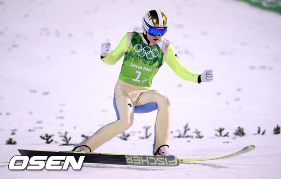 김현기가 스키점프를 마친 후 주먹을 불끈 쥐고 있다. /soul1014@osen.co.kr