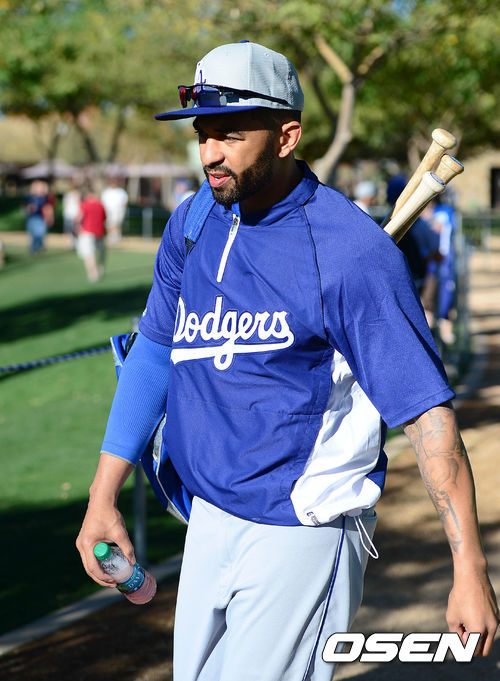 다저스 맷 켐프가 훈련장으로 향하고 있다.