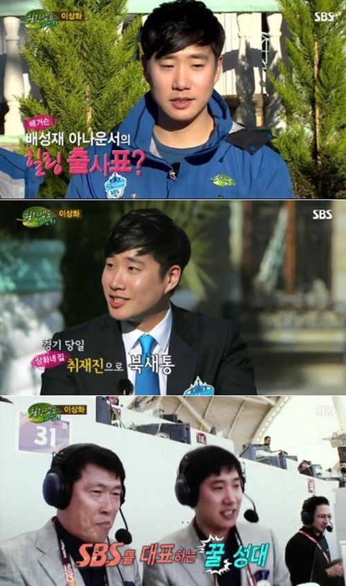 이날 배성재 아나운서는 "비디오로 뽑은 아나운서가 아닌데 (중계를 하다) 목이 쉬어서 장점이 사라졌다"며 재치있게 자신을 소개했다. 이어 "흑심을 품고 다녀서 별명이 연필"이라는 이경규의 폭로에도 아랑곳 않고 성유리에게 호감을 보였다. 그는 "데뷔 때부터 정말 좋아했다. 핑클이 '블루레인'을 부를 때는 이진 씨가 인기가 많았는데 나는 그 떄부터 성유리 씨를 좋아했다. 실물은 처음 뵙는데 정말 아름다우시다"고 너스레를 떨었다.