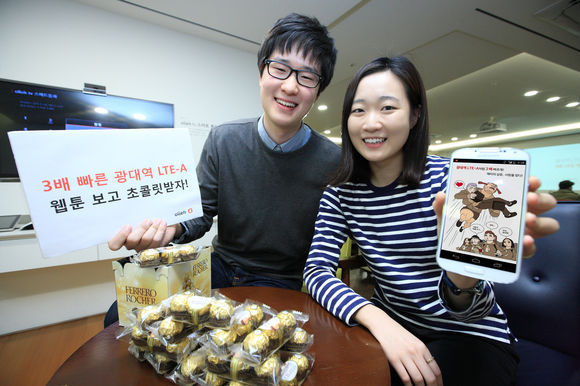 ‘광대역 LTE-A 3배 웹툰’은 2030세대 작가 양영순의 웹툰을 활용해 오는 3월 14일까지 발렌타인데이, 화이트데이, 입학, 취업 시즌에 맞춰 매주 1편씩 한달 간 총 4편의 웹툰 이미지로 제작된다.