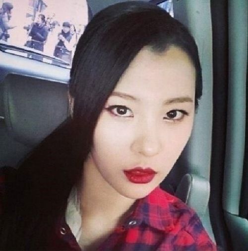 사진 속에서 선미는 블랙 컬러의 롱 헤어를 하나로 묶은 채 카메라를 응시하고 있다. 강렬한 스모키 메이크업에 빨간색 립스틱으로 섹시함을 배가시켰다.