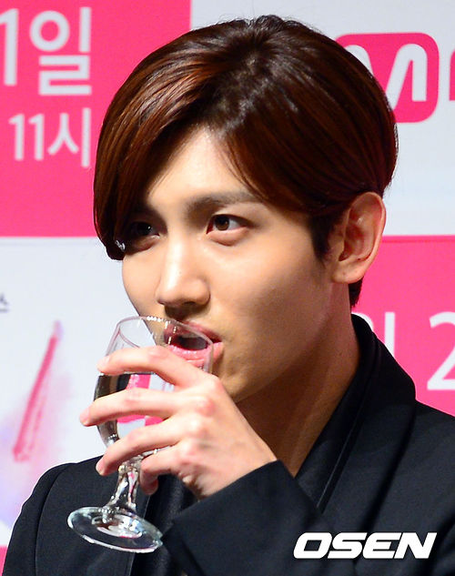 최강창민이 물을 마시고 있다.