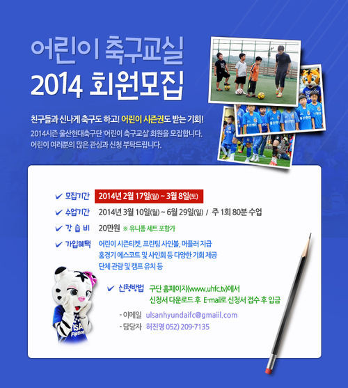 울산 현대가 2014 어린이 축구교실 회원을 모집한다.