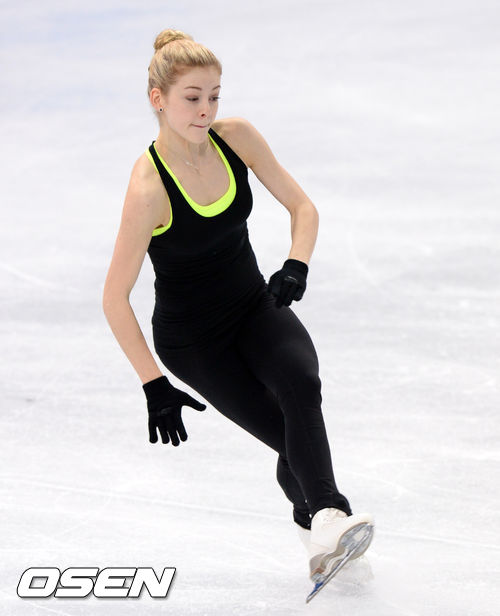 미국의 그레이시 골드가 18일(한국시간)러시아 소치 해안클러스터 내 스케이팅 트레이닝 센터에서 훈련하던 도중 넘어지고 있다.