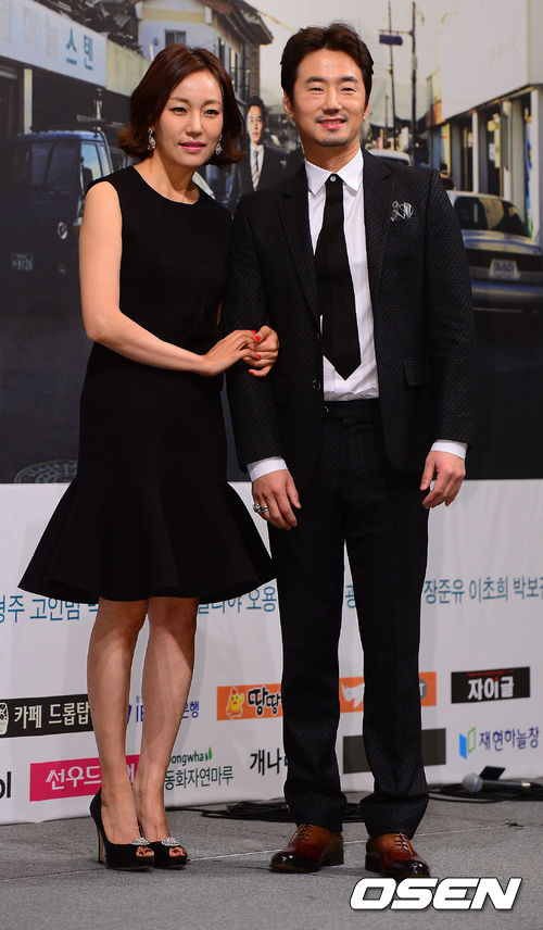 진경, 류승수가 포토타임을 갖고 있다.