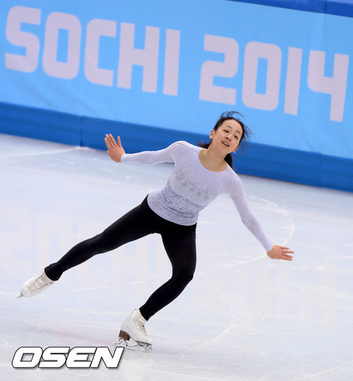아사다 마오가 18일(한국시간)러시아 소치 해안클러스터 내 스케이팅 트레이닝 센터에서 훈련을 하고 있다.