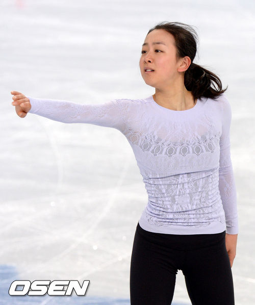 아사다 마오가 18일(한국시간)러시아 소치 해안클러스터 내 스케이팅 트레이닝 센터에서 훈련을 하고 있다.