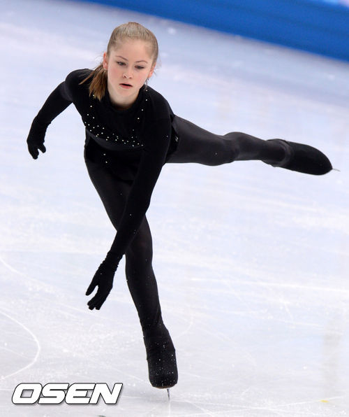 러시아의 율리아 리프니츠카야가 18일(한국시간)러시아 소치 해안클러스터 내 스케이팅 트레이닝 센터에서 훈련을 하고 있다.