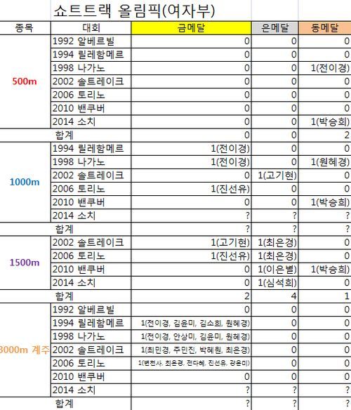 ▲ 동계올림픽 쇼트트랙 역대 메달 현황(여자부)
