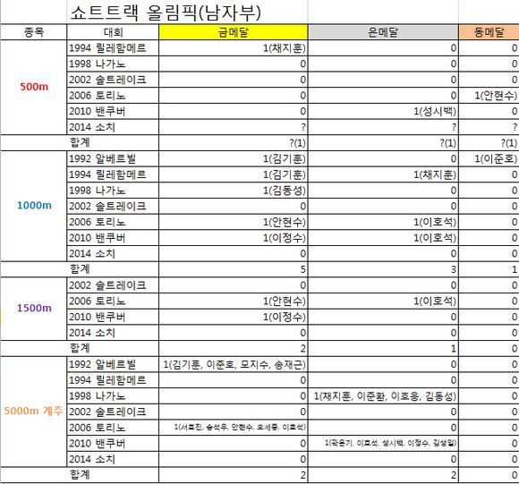 ▲ 동계올림픽 쇼트트랙 역대 메달 현황(남자부)