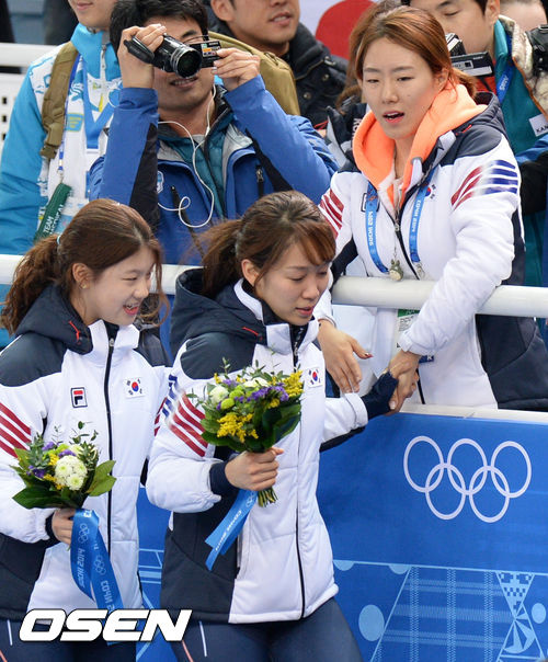 이상화,'금메달! 쇼트트랙 계주선수들 눈물로 축하!'