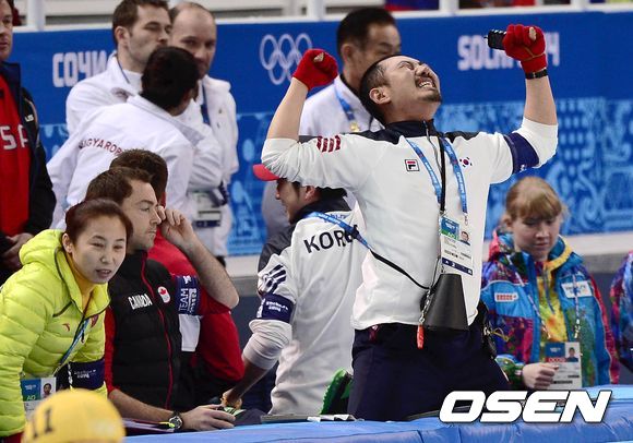 한국의 금메달이 확정되는 순간 최광복 코치가 환호하고 있다./ soul1014@osen.co.kr
