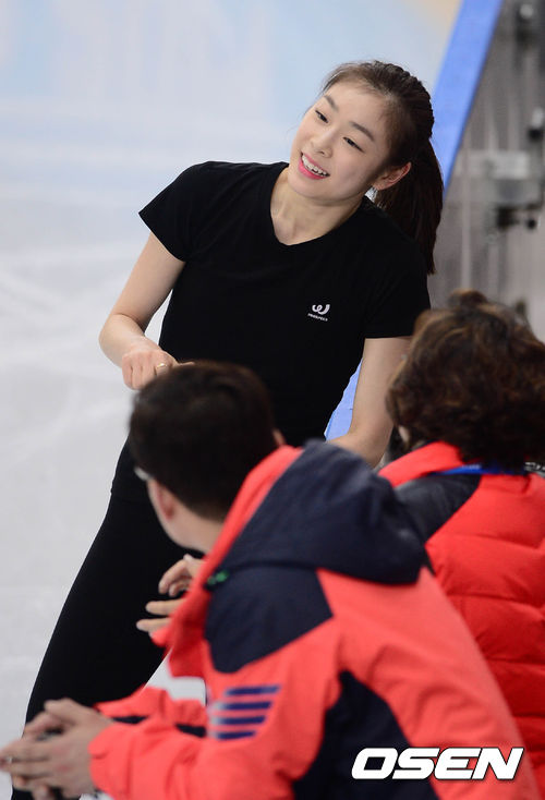김연아가 18일(한국시간)러시아 소치 해안클러스터 내 스케이팅 트레이닝 센터에서 훈련을 마친 후 환하게 미소짓고 있다.