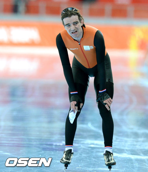 18일 (한국시간)러시아 소치 아들레르 아레나 경기장에서 열린 10000m 남자 스피드스케이팅 경기, 네덜란드 밥 데용이 경기에 임하고 있다.