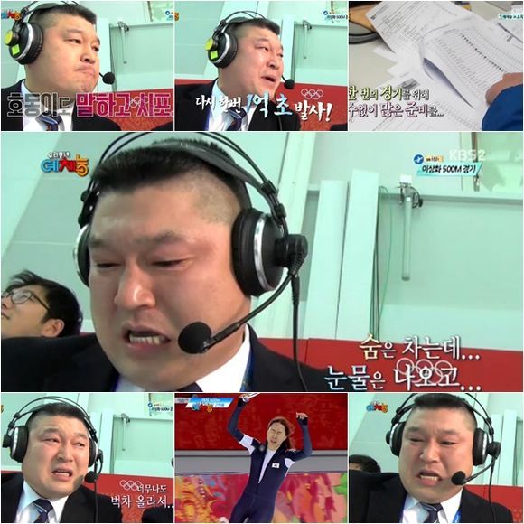 눈치껏 해설에 끼어든 강호동은 “선수들은 이 36~7초의 경기를 위해 1억초 이상의 시간을 노력했다”는 인상적인 멘트로 이상화 선수의 금빛 레이스를 응원했다. 특히 이상화 선수의 레이스에는 침묵을 지키면서도 숨까지 참으며 온 몸으로 이상화 선수의 금메달을 기원했다.