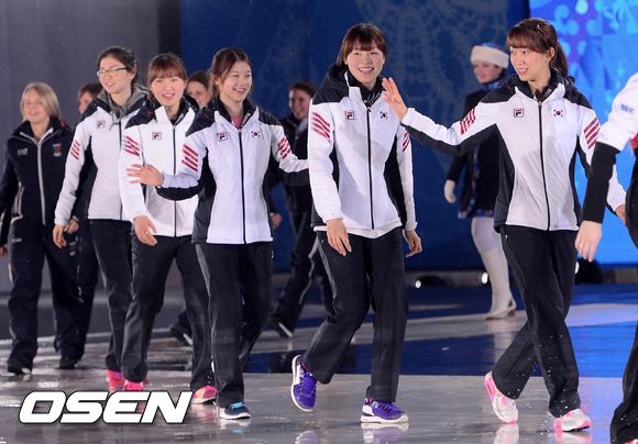 경기를 마치고 19일(한국시간) 러시아 소치 해안 클러스터 내 올림픽 파크 시상식에서 쇼트트랙 여자 계주 시상식이 진행되고 있다. / soul1014@osen.co.kr
