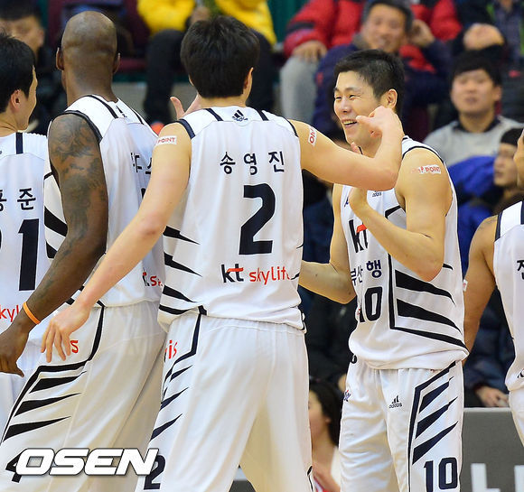 부산 KT는 18일 오후 7시 안양실내체육관에서 벌어진 2013-2014시즌 KB국민카드 프로농구 6라운드에서 홈팀 안양 KGC인삼공사에게 81-77로 졌다. 3연패를 당한 KT(24승 23패)는 5위로 처졌다.