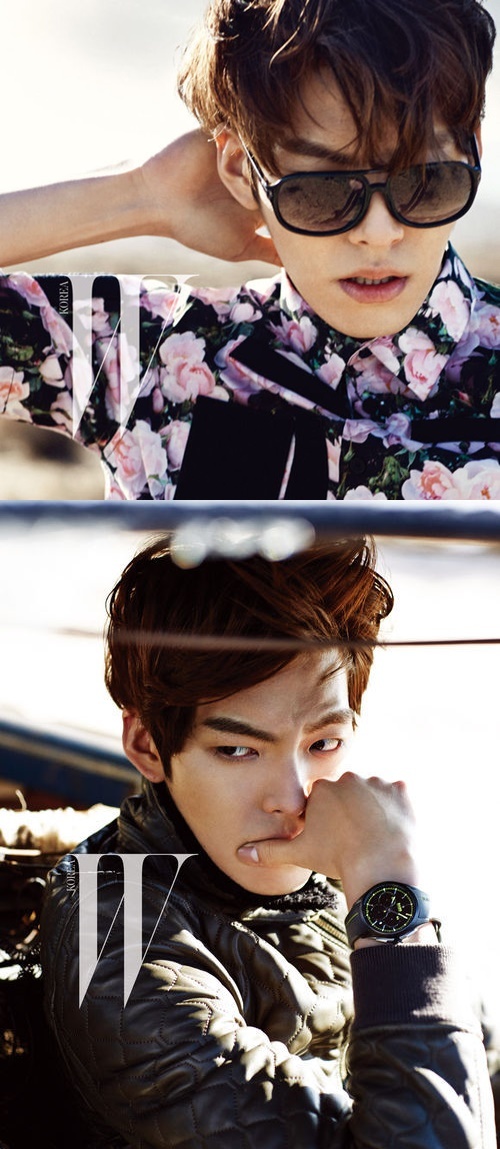 화보 속에서 김우빈은 모델 출신답게 소화하기 힘든 분홍색 꽃무늬 패턴의 셔츠를 입고 섹시한 매력을 발산하고 있다.