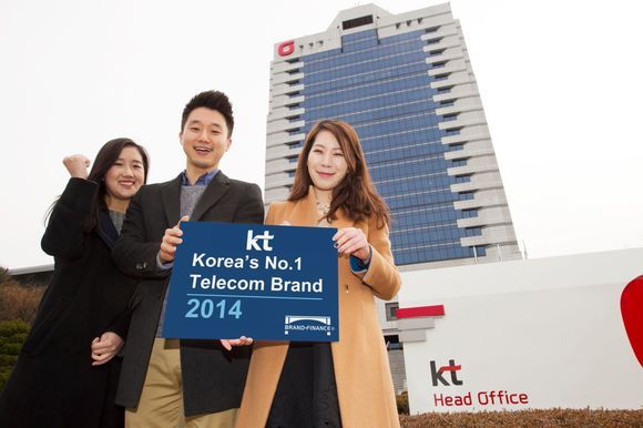 KT 브랜드 가치 평가 기관 ‘브랜드 파이낸스(Brand Finance, www.brandfinance.com)’가 영국 현지 시각 19일 발표한 ‘2014 통신 브랜드 500위(Brand Finance Telecoms 500 2014)’에서 작년에 이어 국내 통신사 중 1위, 전 세계 33위에 선정됐다고 밝혔다.