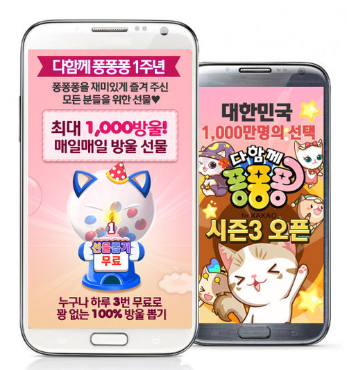 출시 1주년을 맞이한 ‘다함께 퐁퐁퐁’은 신규 미니게임과 전국민랭킹시스템 등 지속적으로 새로운 재미를 적용해 작년 출시된 미니게임으로는 유일하게 1000만 다운로드를 돌파하는 등 이용자들의 꾸준한 사랑을 받고 있다.