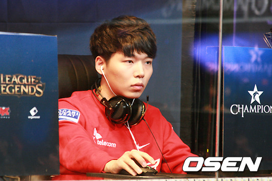 19일 서울 용산 온게임넷 e스포츠 상설경기장에서 'LOL 챔피언스(이하 롤챔스) 스프링 2014시즌' 2차 예선 A조 경기가 열렸다. SK텔레콤 S가 2차 오프라인 예선 첫 경기를 치르고 있다. SK텔레콤 상단 공격수(탑 솔러) '마린' 장경환이 경기에 집중하고 있다.
