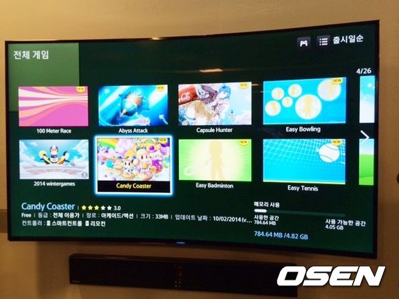 또한 '스마트허브'에 게임패널을 새롭게 추가해 TV와 리모컨만으로 바로 액션, 스포츠, 레이싱 등 다양한 장르의 게임을 즐길 수 있다.