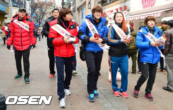 2014 SK 핸드볼 코리아리그 개막을 앞두고 감독과 선수들이 20일 오전 명동 거리홍보에 나섰다.