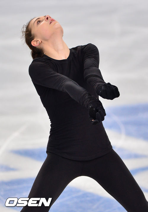 쇼트에서 김연아에 이어 2위를 차지한 아델리나 소트니코바가 프리스케이팅 리허설을 하고 있다.