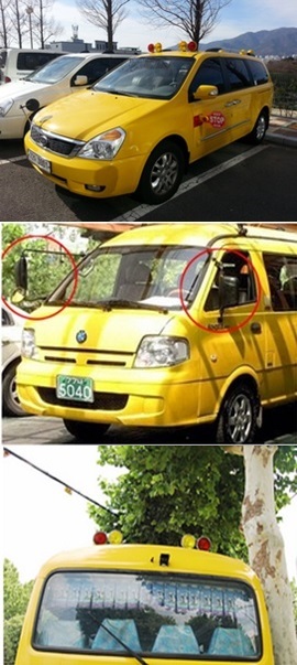어린이 통학차량은 운전자의 사각지대를 최대한 해소하기 위해 보이는 면적이 넓은 광각 실외후사경을 그간 운전석 우측에만 설치했으나 금번에 좌측까지 확대 설치하도록 했다.