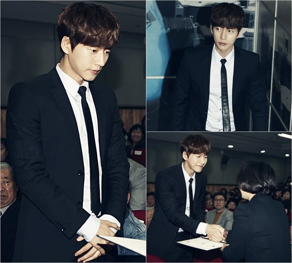 박해진은 20일 오후 5년 간 성폭행 피해 아동들을 후원하고 지역 봉사활동을 꾸준히 해 온 공을 인정받아 강남구청으로부터 감사장을 전달 받았다.