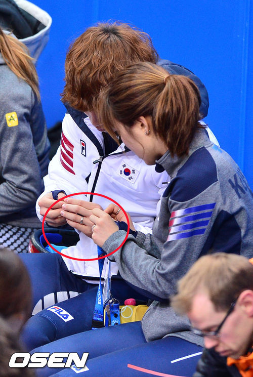 훈련 전 박승희 이한빈 커플이 다정한 데이트를 하고 있다.