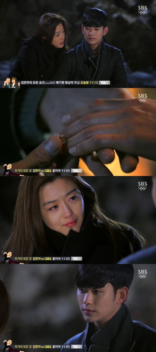 이 자리에서 천송이는 "도민준 하면 떠오를 노래가 있었으면 좋겠다. 노래를 불러달라"고 청했다. 나즈막히 노래를 부른 도민준은 마침내 천송이에게 무릎을 꿇고 프러포즈를 했다.